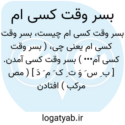 ( بسر وقت کسی آم••• ) بسر وقت کسی آمدن. [ ب ِ س َ وَ ت ِ ک َ م َ دَ ] ( مص مرکب ) افتادن یا رسیدن. بحال او وارسیدن. ( آنندراج ):