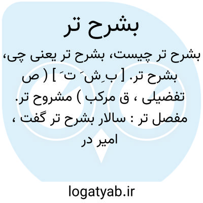 بشرح تر. [ ب ِش َ ت َ ] ( ص تفضیلی، ق مرکب ) مشروح تر. مفصل تر: سالار بشرح تر گفت، امیر در خشم شد و گفت بس عجب باشد که بدین آسانی مردم توان کشت. ( تاریخ بیهقی ).