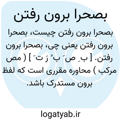 بصحرا برون رفتن. [ ب ِ ص َ ب ُ رَ ت َ ] ( مص مرکب ) محاوره مقرری است که لفظ برون مستدرک باشد. ( آنندراج ):