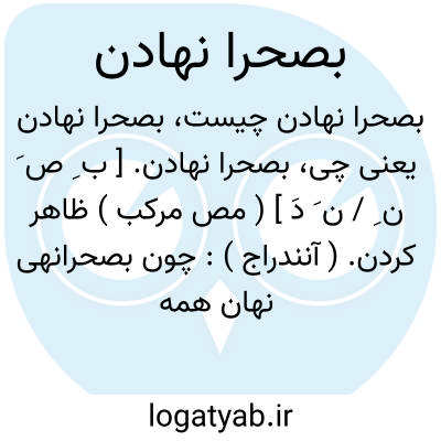بصحرا نهادن. [ ب ِ ص َ ن ِ / ن َ دَ ] ( مص مرکب ) ظاهر کردن. ( آنندراج ):