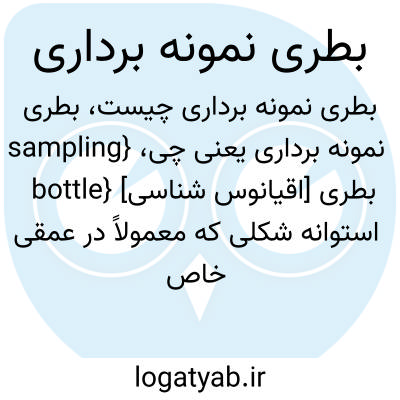 {sampling bottle} [اقیانوس شناسی] بطری استوانه شکلی که معمولاً در عمقی خاص ورودی آن بسته می شود و نمونۀ آب در درون آن به دام می افتد و بدون تبادل با محیط اطراف به سطح آب آورده می شود