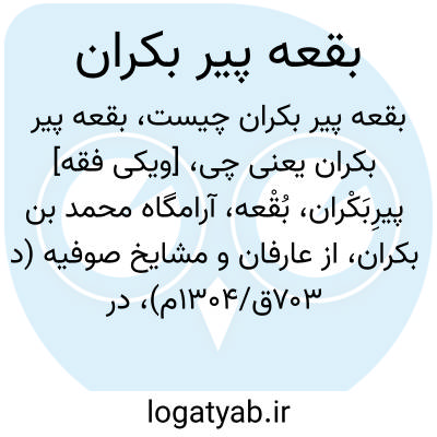 [ویکی فقه] پیرِبَکْران، بُقْعه، آرامگاه محمد بن بکران، از عارفان و مشایخ صوفیه (د ۷۰۳ق/۱۳۰۴م)، در شهری به همین نام، در ۲۵ کیلومتری جنوب غربی اصفهان می باشد.