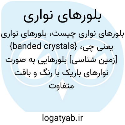 {banded crystals} [زمین شناسی] بلورهایی به صورت نوارهای باریک با رنگ و بافت متفاوت