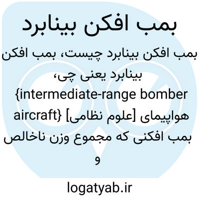 {intermediate-range bomber aircraft} [علوم نظامی] هواپیمای بمب افکنی که مجموع وزن ناخالص و محمولۀ بمب آن برای شعاع عملیاتی 1850 تا 3700 کیلومتر طراحی شده است
