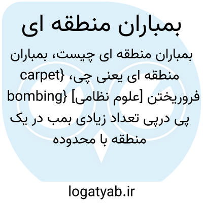 {carpet bombing} [علوم نظامی] فروریختن پی درپی تعداد زیادی بمب در یک منطقه با محدوده مشخص، به طوری که به تمام قسمت ها صدمه وارد شود