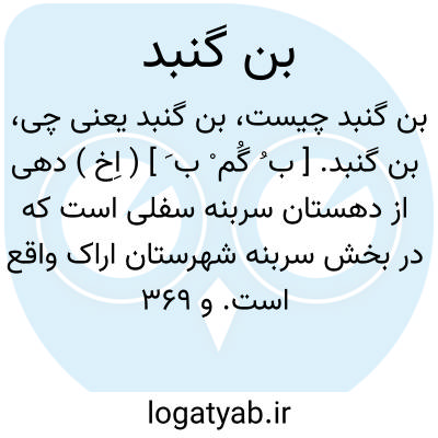بن گنبد. [ ب ُ گُم ْ ب َ ] ( اِخ ) دهی از دهستان سربنه سفلی است که در بخش سربنه شهرستان اراک واقع است. و 369 تن سکنه دارد. ( از فرهنگ جغرافیائی ایران ج 2 ).