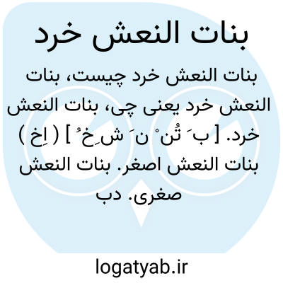 بنات النعش خرد. [ ب َ تُن ْ ن َ ش ِخ ُ ] ( اِخ ) بنات النعش اصغر. بنات النعش صغری. دب اصغر. رجوع به بنات النعش و رجوع به ذیل هفت اورنگ شود.