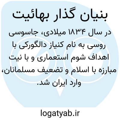 [ویکی اهل البیت] در سال 1834 میلادی، جاسوسی از روس به ایران آمد و به منظور مبارزه با اسلام و مسلمانان، نقشه پلید و شیطانی استعمارگران را نیز به همراه داشت و متأسفانه این عنصر خیانتکار توانست در سیاست آن روز ایران، نقش کینه توزانه و ویرانگری را بازی کند. پس از مدتی به عراق آمد و با این که نامش «کنیاز دالگورکی» بود، خود را «شیخ عیسی لنکرانی» معرفی کرد و به لباس روحانیت درآمد و در درس «سید کاظم رشتی» که از علمای کربلا بود، شرکت کرد و در همان جا با مردی که نامش «علی محمد» و شاگرد سید رشتی بود و به مصرف حشیش عادت داشت ملاقات کرد و با شگردهای خاصی توانست با او طرح دوستی و رفاقت بریزد و اعتماد متقابل پدید آورد.