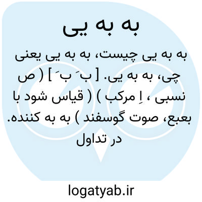 به به یی. [ ب َ ب َ ] ( ص نسبی، اِ مرکب ) ( قیاس شود با بعبع، صوت گوسفند ) به به کننده. در تداول کودکان، گوسفند. ( فرهنگ فارسی معین ).