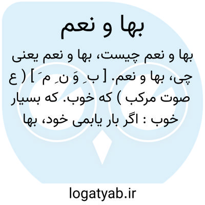 بها و نعم. [ ب ِ وَ ن ِ م َ ] ( ع صوت مرکب ) که خوب. که بسیار خوب: اگر بار یابمی خود، بها و نعم و اگرنه بازگردم. ( تاریخ بیهقی ). اگر به آسانی برآید [دندان گاه کشیدن ] بها و نعم و اگرنه... ( ذخیره خوارزمشاهی ).