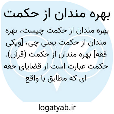[ویکی فقه] بهره مندان از حکمت (قرآن). حکمت عبارت است از قضایای حقه ای که مطابق با واقع باشد، یعنی به نحوی مشتمل بر سعادت بشر باشد.