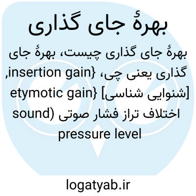 {insertion gain, etymotic gain} [شنوایی شناسی] اختلاف تراز فشار صوتی (sound pressure level ) در مجرای گوش، قبل و بعد از جای گذاری سمعک