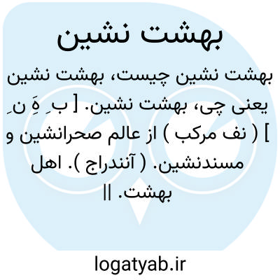 لغت نامه دهخدا بهشت نشین. [ ب ِ هَِ ن ِ ] ( نف مرکب ) از عالم صحرانشین و مسندنشین. ( آنندراج ). اهل بهشت. || مبارک و خجسته و مسعود و بختیار. ( ناظم الاطباء ).