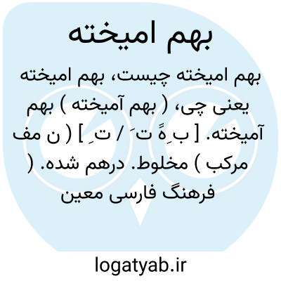 ( بهم آمیخته ) بهم آمیخته. [ ب ِهََ ت َ / ت ِ ] ( ن مف مرکب ) مخلوط. درهم شده. ( فرهنگ فارسی معین ). درهم و مخلوط و مختلط. ( ناظم الاطباء ).