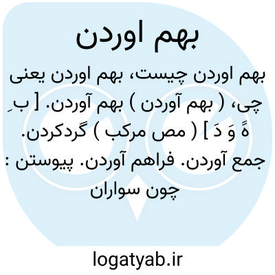 ( بهم آوردن ) بهم آوردن. [ ب ِ هََ وَ دَ ] ( مص مرکب ) گردکردن. جمع آوردن. فراهم آوردن. پیوستن: