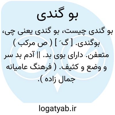 بوگندی. [ گ َ ] ( ص مرکب ) متعفن. دارای بوی بد. || آدم بد سر و وضع و کثیف. ( فرهنگ عامیانه جمال زاده ).