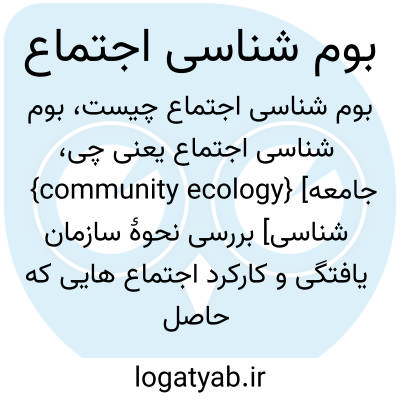 {community ecology} [جامعه شناسی] بررسی نحوۀ سازمان یافتگی و کارکرد اجتماع هایی که حاصل گردهم آمدن انسان ها در یک پهنه یا زیستگاه خاص است