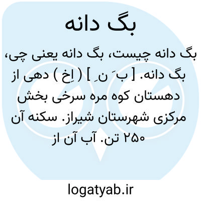 بگ دانه. [ ب َ ن ِ ] ( اِخ ) دهی از دهستان کوه مره سرخی بخش مرکزی شهرستان شیراز. سکنه آن 250 تن. آب آن از چشمه و محصول آن میوه، برنج و لبنیات است. شغل اهالی زراعت و باغداری. ( فرهنگ جغرافیایی ایران ج 7 ).