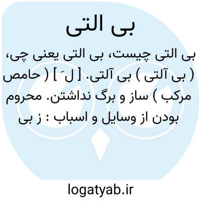 ( بی آلتی ) بی آلتی. [ ل َ ] ( حامص مرکب ) ساز و برگ نداشتن. محروم بودن از وسایل و اسباب: