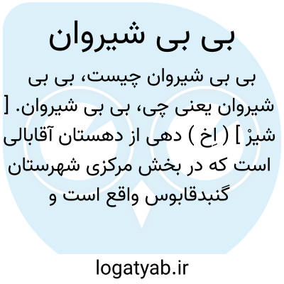 بی بی شیروان. [ شیرْ ] ( اِخ ) دهی از دهستان آقابالی است که در بخش مرکزی شهرستان گنبدقابوس واقع است و دارای 600 تن سکنه است. ( از فرهنگ جغرافیائی ایران ج 3 ).
