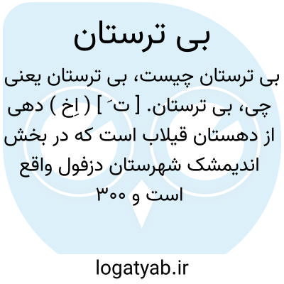 بی ترستان. [ ت َ ] ( اِخ ) دهی از دهستان قیلاب است که در بخش اندیمشک شهرستان دزفول واقع است و 300 تن سکنه دارد. ( از فرهنگ جغرافیائی ایران ج 6 ).