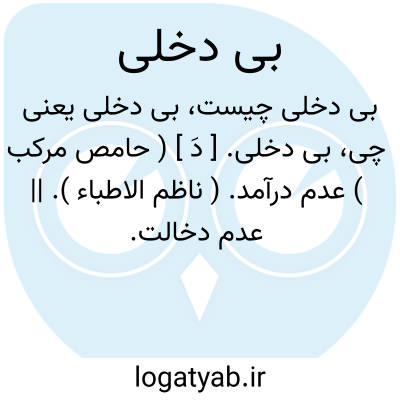بی دخلی. [ دَ ] ( حامص مرکب ) عدم درآمد. ( ناظم الاطباء ). || عدم دخالت.