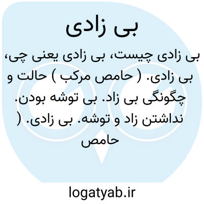 بی زادی. ( حامص مرکب ) حالت و چگونگی بی زاد. بی توشه بودن. نداشتن زاد و توشه.