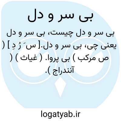 بی سر و دل.[ س َ رُ دِ ] ( ص مرکب ) بی پروا. ( غیاث ) ( آنندراج ).