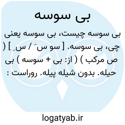 بی سوسه. [ سو س َ / س ِ ] ( ص مرکب ) ( از: بی + سوسه ) بی حیله. بدون شیله پیله. روراست: معامله بی سوسه؛ معامله ای که در او هیچ حقه و تزویر نباشد. ( از یادداشت مؤلف ). رجوع به سوسه شود.