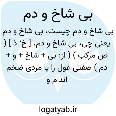 بی شاخ و دم. [ خ ُ دُ ] ( ص مرکب ) ( از: بی + شاخ + و + دم ) صفتی غول را یا مردی ضخم اندام و بیقواره را. || که شاخ و دم ندارد. رجوع به غول بی شاخ و دم شود.