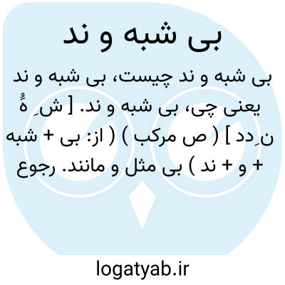 بی شبه و ند. [ ش ِ هَُ ن ِدد ] ( ص مرکب ) ( از: بی + شبه + و + ند ) بی مثل و مانند. رجوع به شبه و ند شود.