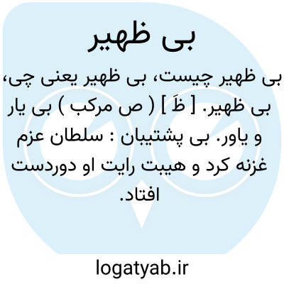بی ظهیر. [ ظَ ] ( ص مرکب ) بی یار و یاور. بی پشتیبان: سلطان عزم غزنه کرد و هیبت رایت او دوردست افتاد. امیر ابوالفوارس بی ظهیر و مجیر بماند. ( ترجمه تاریخ یمینی ص 391 ). رجوع به ظهیر شود.
