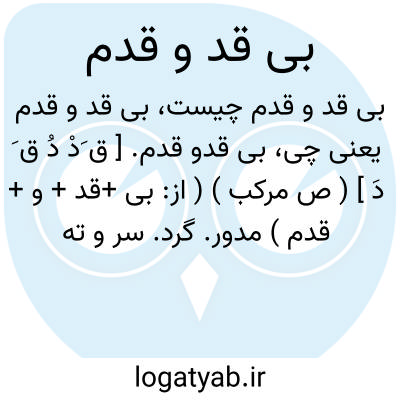 بی قدو قدم. [ ق َدْ دُ ق َ دَ ] ( ص مرکب ) ( از: بی +قد + و + قدم ) مدور. گرد. سر و ته یکی: