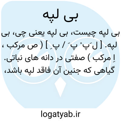 بی لپه. [ ل َپ ْ پ َ / پ ِ ] ( ص مرکب، اِ مرکب ) صفتی در دانه های نباتی. گیاهی که جنین آن فاقد لپه باشد، و این اصطلاح بجای «عدیم الفلقه » پذیرفته شده است. ( لغات فرهنگستان ).