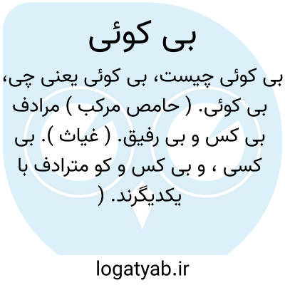 بی کوئی. ( حامص مرکب ) مرادف بی کس و بی رفیق. ( غیاث ). بی کسی، و بی کس و کو مترادف با یکدیگرند. ( آنندراج ).