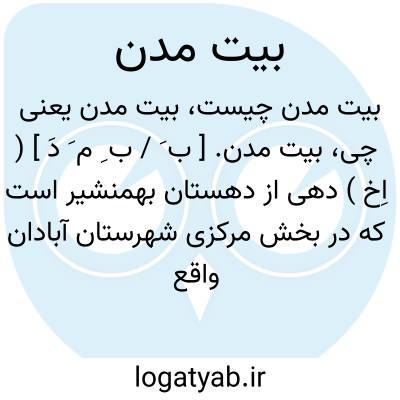 بیت مدن. [ ب َ / ب ِ م َ دَ ] ( اِخ ) دهی از دهستان بهمنشیر است که در بخش مرکزی شهرستان آبادان واقع است و 550 تن سکنه دارد. ( از فرهنگ جغرافیائی ایران ج 6 ).