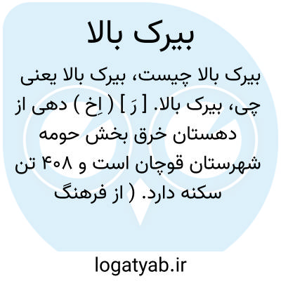 بیرک بالا. [ رَ ] ( اِخ ) دهی از دهستان خرق بخش حومه شهرستان قوچان است و 408 تن سکنه دارد. ( از فرهنگ جغرافیائی ایران ج 9 ).