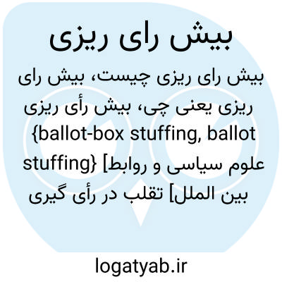 {ballot-box stuffing, ballot stuffing} [علوم سیاسی و روابط بین الملل] تقلب در رأی گیری از راه پرکردن صندوق با آرای غیرواقعی متـ. پرکردن صندوق