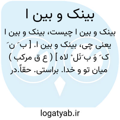 بینک و بین ا. [ ب َ ن َ ک َ وَ ب َنَل ْ لاه ] ( ع ق مرکب ) میان تو و خدا. براستی. حقاً.در مورد قسم گویند. و رجوع به بینی و بین اﷲ شود.