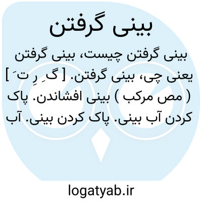 بینی گرفتن. [ گ ِ رِ ت َ ] ( مص مرکب ) بینی افشاندن. پاک کردن آب بینی. پاک کردن بینی. آب بینی خود را بدستمال و غیره زدودن. ( یادداشت مؤلف ).