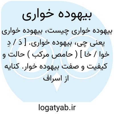 بیهوده خواری. [ دَ / دِ خوا / خا ] ( حامص مرکب ) حالت و کیفیت و صفت بیهوده خوار. کنایه از اسراف وخرج بیجا کردن. ( ناظم الاطباء ). اسراف و ولخرجی و هرزه خرجی. تبذیر. باددستی. ( ناظم الاطباء ):