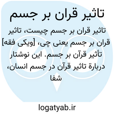[ویکی فقه] تأثیر قرآن بر جسم. این نوشتار دربارة تاثیر قرآن در جسم انسان، شفا یافتن قلب از صفات پست، شفا پیدا کردن جسم از امراض صعب العلاج و درباره تاثیر قرآن، بر قلب و جان انسان های مؤمن و کافر، انسان های عیاش و هرزه، حاکمان و سلاطین و بحث شده است.