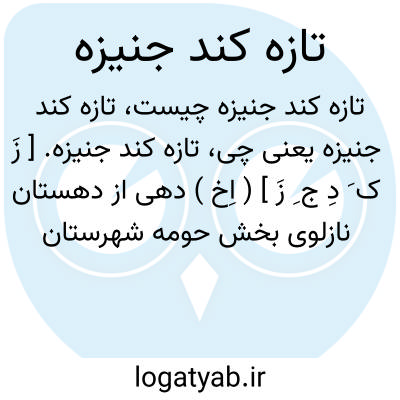 تازه کند جنیزه. [ زَ ک َ دِ ج ِ زَ ] ( اِخ ) دهی از دهستان نازلوی بخش حومه شهرستان ارومیه است که در 16هزارگزی باختری ارومیه و 7500گزی باختر شوسه ارومیه بسلماس واقعاست. جلگه، معتدل، سالم است و 131 تن سکنه دارد، شیعه، ترکی. آب آن از نازلوچای. محصول آن غلات، چغندر، توتون، کشمش. شغل اهالی زراعت. صنایع دستی جوراب بافی. راه مالرو دارد. ( از فرهنگ جغرافیائی ایران ج 4 ).
