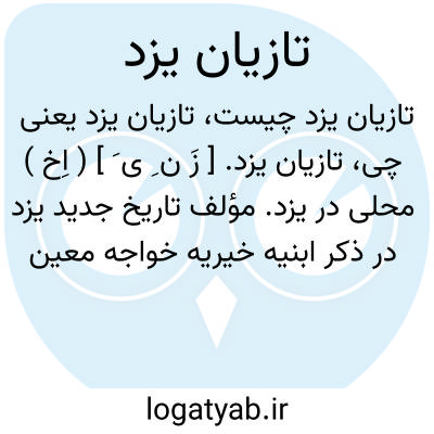 تازیان یزد. [ زَ ن ِ ی َ ] ( اِخ ) محلی در یزد. مؤلف تاریخ جدید یزد در ذکر ابنیه خیریه خواجه معین الدین علی در سنه 861 و 863 هَ. ق.در تازیان یزد و فیروزآباد میبد و مسجد نو یزد بدون این که نام خواجه حافظ را ببرد، بمناسبت مقام... ذکر میکند... ( تاریخ عصر حافظ تألیف قاسم غنی ص مح ).