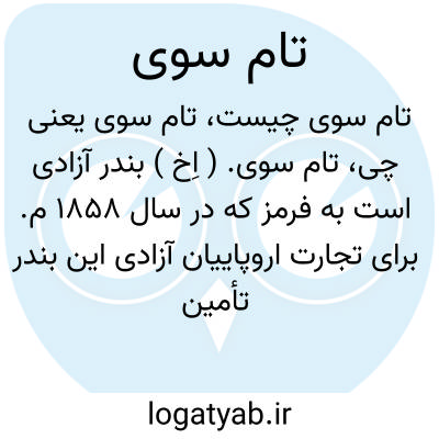 تام سوی. ( اِخ ) بندر آزادی است به فرمز که در سال 1858 م. برای تجارت اروپاییان آزادی این بندر تأمین گردید و در اول اکتبر سال 1884 در این بندر بین فرانسویها و چینی ها جنگی درگرفت. در اطراف آن معادن گوگرد فراوان است.