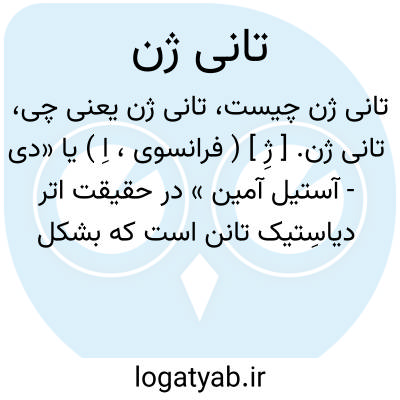 تانی ژن. [ ژِ ] ( فرانسوی، اِ ) یا «دی - آستیل آمین » در حقیقت اتر دیاسِتیک تانن است که بشکل گرد زردرنگ خاکستری بی بو و طعم یا با طعمی ترش یافت شود و در آب غیرمحلول و در اسیدها و محلولهای قلیایی حل میگردد. دارای 85 درصد تانن است و با آلبومین و ژلاتین رسوب دهد. اگر مقداری تانی ژن را از راه دهان و معده داخل بدن کنیم قسمتی از آن بحالت تانی ژن و مقداری بحالت تانن در آخرین قسمت روده ها یافت میشود. تانی ژن را بعنوان ضدعفونی و ضداسهال دامها تجویز میکنند.