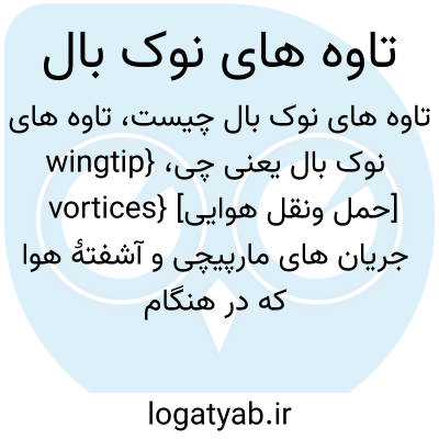 {wingtip vortices} [حمل ونقل هوایی] جریان های مارپیچی و آشفتۀ هوا که در هنگام پرواز، به علت اختلاف فشار زیر و روی بال، در نوک بال ها تشکیل می شوند