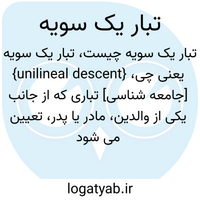 {unilineal descent} [جامعه شناسی] تباری که از جانب یکی از والدین، مادر یا پدر، تعیین می شود