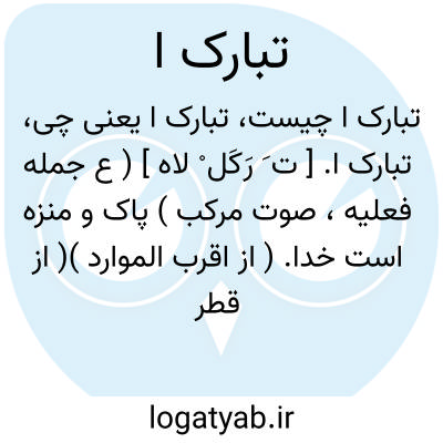 تبارک ا. [ ت َ رَکَل ْ لاه ] ( ع جمله فعلیه، صوت مرکب ) پاک و منزه است خدا. ( از اقرب الموارد )( از قطر المحیط ) ( منتهی الارب ) ( ناظم الاطباء ). گفته اند که این صفت خاص است بخدا. ( از قطر المحیط ) ( منتهی الارب ) ( از ناظم الاطباء ). بزرگ است و پاک است اﷲ و در مقام تعجب و تحسین استعمال میشود. ( فرهنگ نظام ). بزرگ شد و پاک شد اﷲ تعالی و استعمال این در مدح بوقت تعجب باشد. ( غیاث اللغات ) ( آنندراج ). || و گاه در مورد اشخاص استعمال شود بمعنی وَه وَه. خَه خَه، بَه بَه، آفرین، بَخ بَخ، بارک اﷲ، ماشأاﷲ، احسنت، بنامیزد، تعالی اﷲ، چشم بد دور، خدای بگوالاد، خدای افزون کناد:
