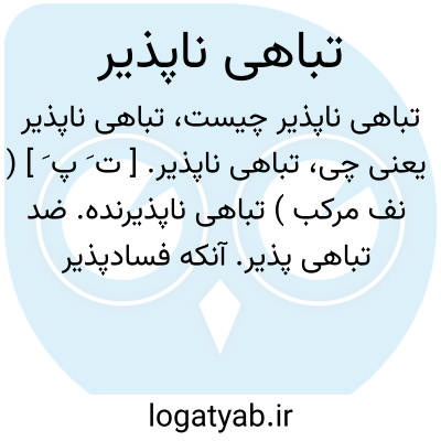 تباهی ناپذیر. [ ت َ پ َ ] ( نف مرکب ) تباهی ناپذیرنده. ضد تباهی پذیر. آنکه فسادپذیر نباشد. آنکه فساد در او راه نیابد. || نامیرا. ابدی. همیشه پایدار. ضد فانی و تباهی پذیر. رجوع به تباه و تباهی و دیگر ترکیب های این دو شود.